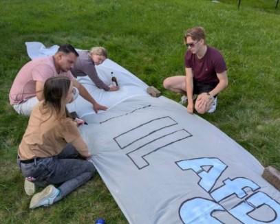 16 Sontowski, Biallawons und Kim Alina von Wedelstädt beim Bannermalen ← Vorheriges Nächstes → Sontowski, Biallawons und Kim Alina von Wedelstädt beim Bannermalen